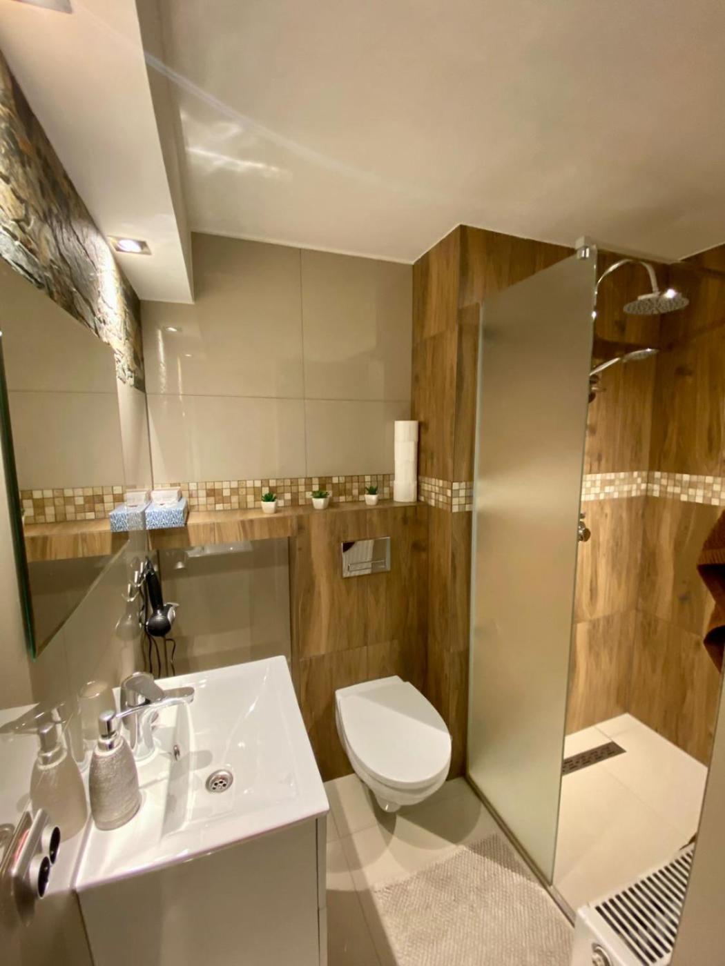 Apartament. Boasting a private entrance, this apartment features 1 living room, 1 separate bedroom and 1 bathroom with a walk-in shower and a hairdryer. Guests will find a stovetop, a refrigerator, kitchenware and a microwave in the well-equipped kitchen. The apartment also comes with a barbecue. This wheelchair accessible apartment has a tea and coffee maker, a seating area with a flat-screen TV and a higher level toilet. The unit has 4 beds. Apartament - 5 osobowy. Powierzchnia pokoju ok.: 45 mkw.