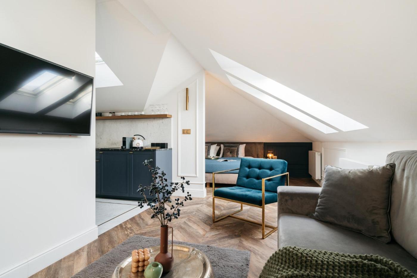 Studio z łóżkiem typu king-size i rozkładaną sofą. The studio offers air conditioning, soundproof walls, as well as a private bathroom featuring a walk-in shower and a hairdryer. In the well-equipped kitchenette, guests will find a stovetop, a refrigerator, kitchenware and a tea and coffee maker. The studio features parquet floors, a seating area with a flat-screen TV, a dining area, a wardrobe as well as city views. The unit offers 2 beds. Studio - 5 osobowy. Powierzchnia pokoju ok.: 20 mkw. ;