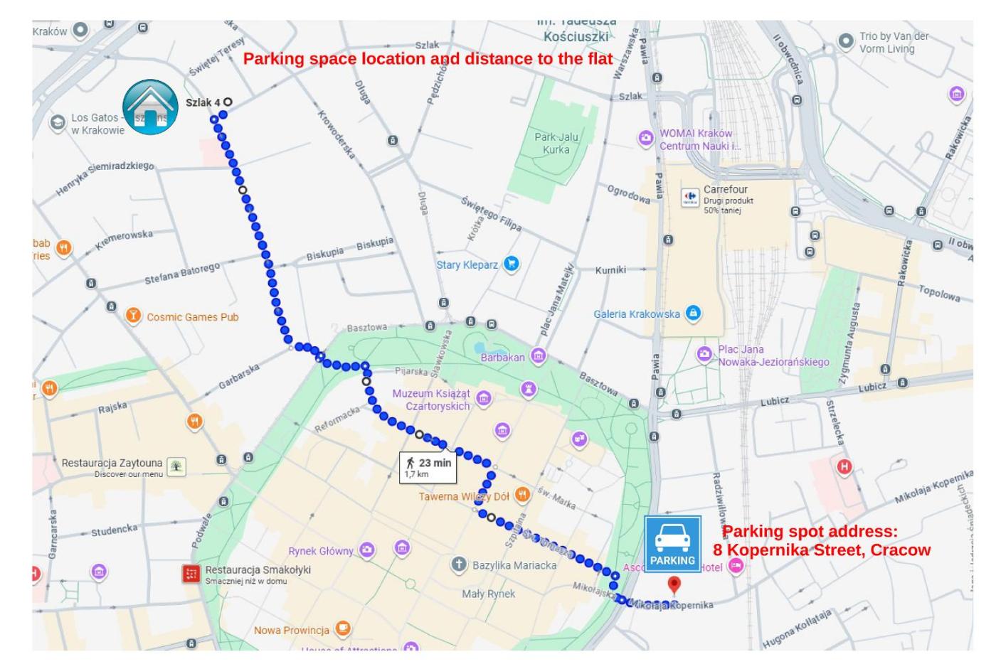 Obiekt Cracow Route #3 - Old Town usytuowany jest w centrum miejscowości Kraków. Odległość ważnych miejsc od obiektu: Brama Floriańska – niecały kilometr, Dworzec PKP Kraków Główny – 1 km. Na miejscu zapewniono bezpłatne Wi-Fi, a prywatny parking dostępny jest za dodatkową opłatą.