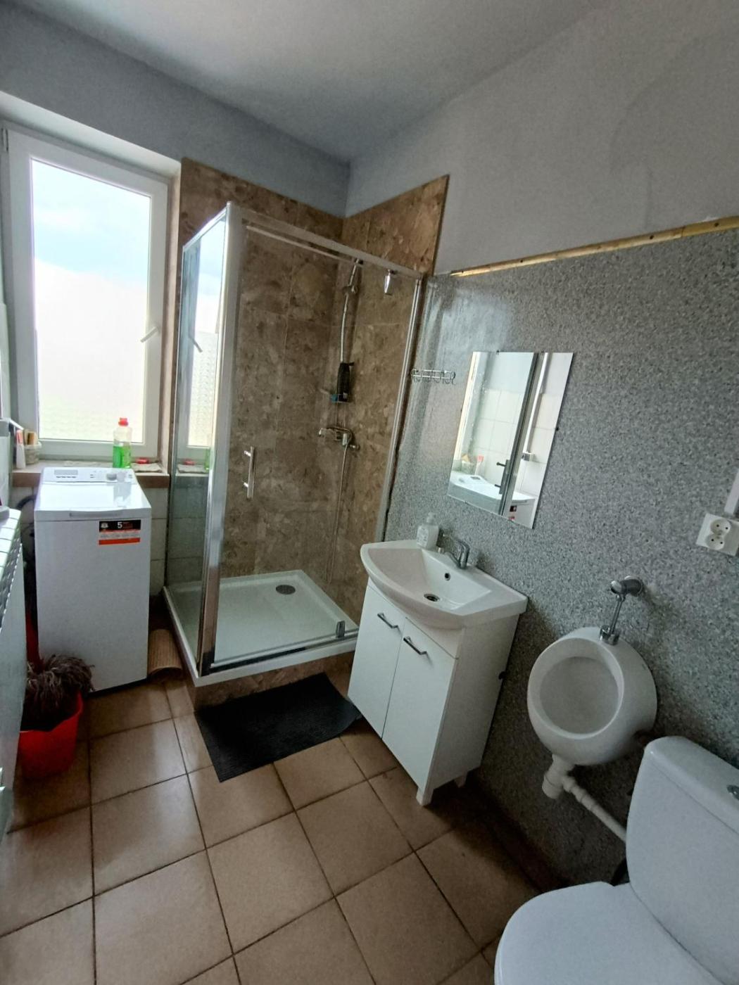 Pokój Trzyosobowy ze wspólną łazienką. The triple room features a washing machine, a wardrobe, as well as a shared bathroom boasting a bath and a shower. The well-equipped kitchen has a stovetop, a refrigerator, kitchenware and an oven. Featuring outdoor furniture, this triple room also provides parquet floors, heating and a flat-screen TV. The unit has 3 beds. Pokój Trzyosobowy - 3 osobowy. Powierzchnia pokoju ok.: 12 mkw. ;